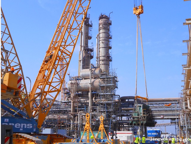 石化起运员工沙特IBB项目施工完成高难度吊装