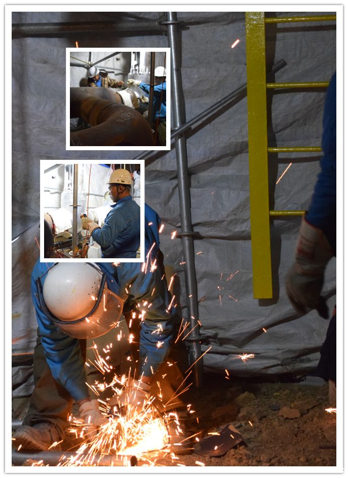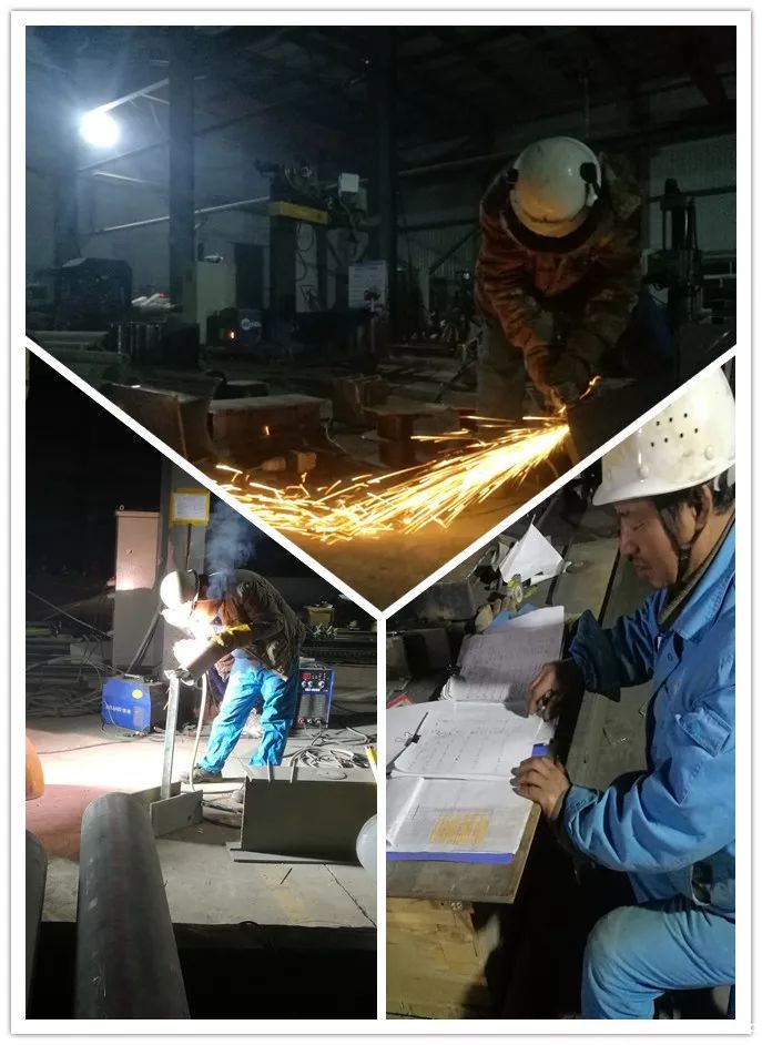 △工人正在对特殊材质管材进行预热和制作支撑