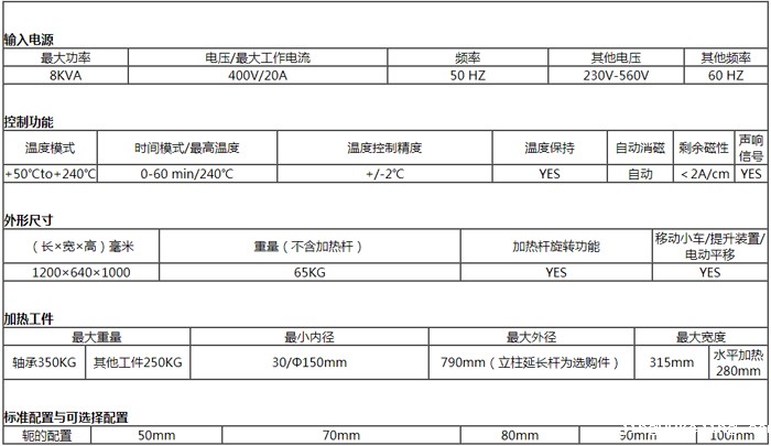 3、微电脑轴承加热器,进口轴承加热器,电磁感应轴承加热器技术参数:
