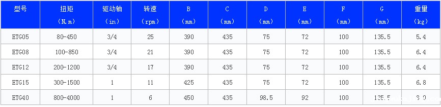 单速电动扭矩扳手 ◆ 人机界面,液晶屏直接显示扭矩值,无冲击连续旋转,达设定扭矩值自动停机; ◆ 双重过载保护,电子防过扭系统和扭矩过载离合器,有效保护传动部件; ◆ 出