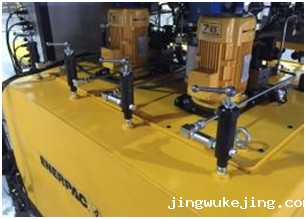 (1) 液压动力单元配置两台 其他品牌 高 效 ZE 系列电动泵供油,正常情况下一台电动泵为两个液压油缸供油; (2) 同时可以通过外部管路连接后用其中一台电动泵为四个液压油缸供油; (3) 高频电磁换向阀用于顶升/缩回控制; (4) 一个 800L 可用液压油容量的油箱为系统的应用和循环冷却提供充足的油量; (5) 配置液压油冷却器可以及时冷却液压油,防止工作过程中液压油温度上升过快; |