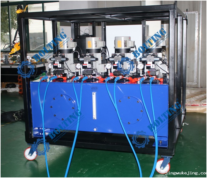BOLTING博霆1600吨PLC控制全自动同步顶升系统(数控智能油缸同步控制系统)实验中