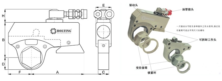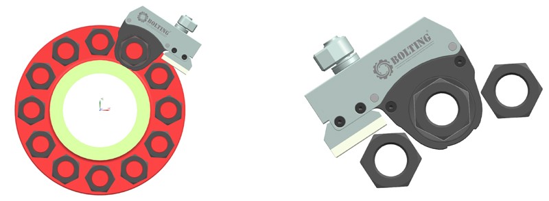 石油防喷器采油树专用缺口式超薄中空液压扭矩/扭力/力矩扳手,紧固或拆卸过程中,无需反复取下,一次安装即可