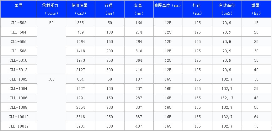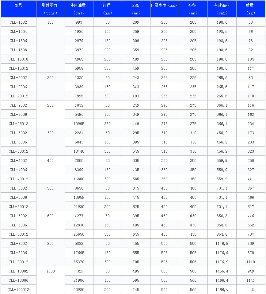 ◆ 承载能力1000 ton以上,行程可达100,200和300mm