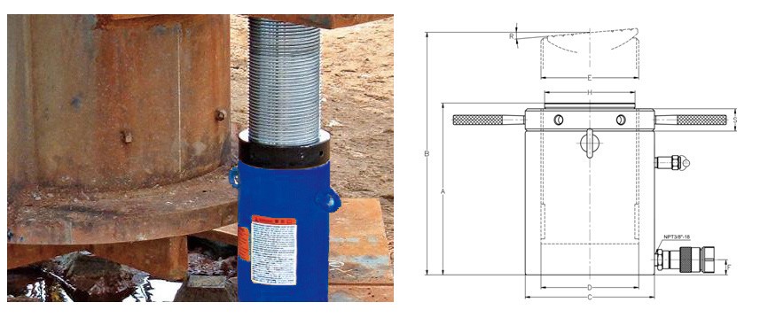 螺母锁定油缸 ◆ 单作用,负载回缩 ; ◆ 机械式螺母锁定使负载更安全; ◆ 烤漆表面提供更强的抗腐蚀能力; ◆ 溢流孔兼有限制行程的功能; ◆ 可承受的偏载达液压油缸额定承载