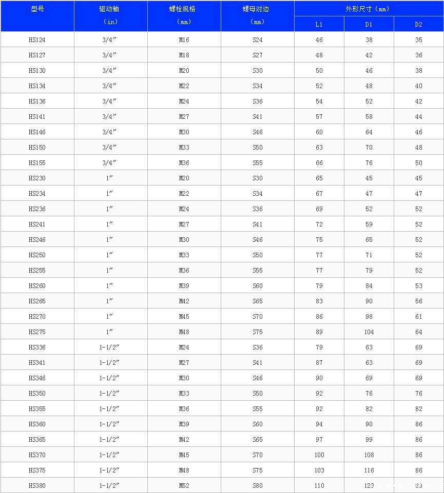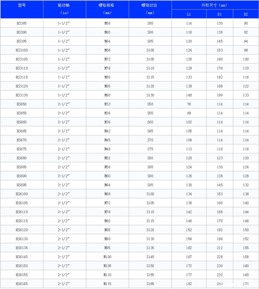 ◆ 以下为公制套筒;