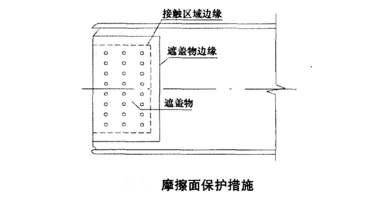1、在对螺栓、连接板的运输和保存过程中,应轻装、轻卸,防止损伤螺纹和连接板 。此外还应采取一定的防潮 、防锈 和防沾染赃物等相应措施,保护摩擦面,对摩擦面已被污染的连接板等 , 应进行相应的处理才能使用。图是一种简便可行的保护摩擦面的方法。在防腐施工前,将纸张等遮盖物,覆盖在摩擦面之上,遮盖物四边要 宽于接触区域边缘,并且用胶带将遮盖物边缘进行粘贴密封 。