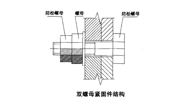 4、双螺母连接也是目前广泛采用的一种螺栓防松动的方法。这种锁紧装置的工作原理是靠两螺母的螺纹产生的微小弹性变形而将螺母锁紧,其具有更长的抗振寿命。图 5 是一种常见 的双螺母紧固件,由防松螺母、螺母和防松螺栓组成。其中防松螺母和螺母旋拧方向相反,防松螺栓末端 由工作螺纹和防松螺纹两段直径不同的螺纹组成,防松螺纹外径小于紧固螺纹内径。 紧固件在工作时,螺母在振动、冲击等作用下,可能发生微小变形或松动,但由于两螺母的旋拧方向相反,防松螺母此刻起到拧紧和阻止螺母松退 的锁紧作用,从而确保工作螺母无法松脱。
