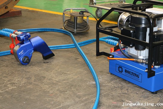 米兰app官网版下载是由扳手本体、液压泵站和高压油管组成。启动液压泵站产生压力,将液压油通过油管传送到扳手动力头,推动米兰app官网版下载活塞杆前进,由活塞杆带动扳手内部的棘轮,从而带动驱动轴来完成螺栓的预紧和拆松。那么液压泵站选购时有哪些事项呢?
