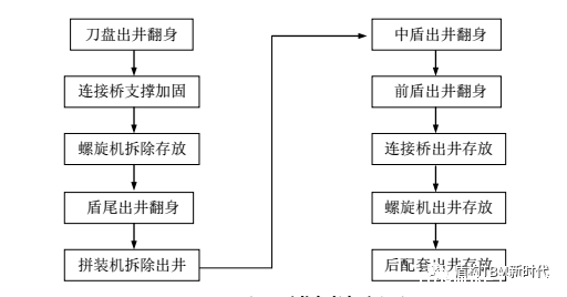 盾构机的拆卸与盾构机的下井组装正好是相反的过程,待盾构机主机完全支撑在接收支架上之后,就可以对盾构机进行分解了,其分解步骤如下: