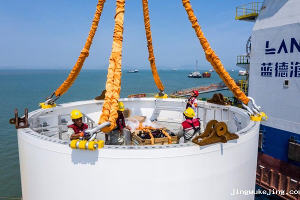 目前,该项目正按既定目标有序推进,已累计完成18个海上风机承台基础沉桩、6个基础承台浇筑、陆上升压站主要电气设备安装调试等重点工作,第二台风机正准备进行吊装。