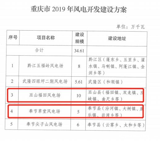11月22日,重庆市能源局下达《重庆市2019年风电开发建设方案的通知》,项目规模合计346.1MW。其中,特变电工新能源公司奉节草堂风电场和巫山福田风电场两个风电项目共计150MW,列入重庆市2019年风电开发建设方案,并纳入了重庆市“十三五”电力发展规划。