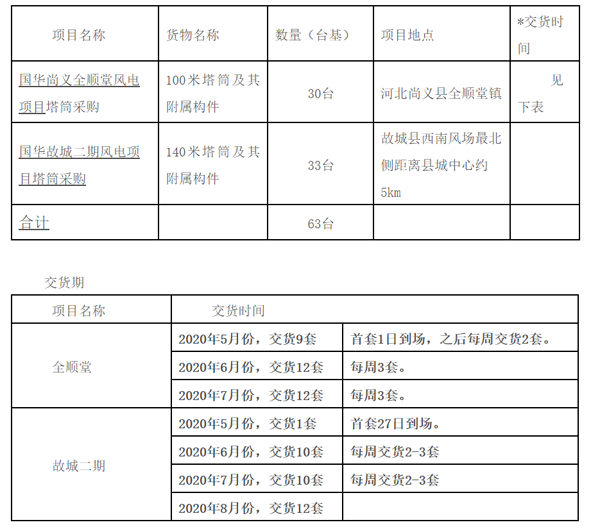国华能源河北区域300MW风电项目塔筒采购公开招标