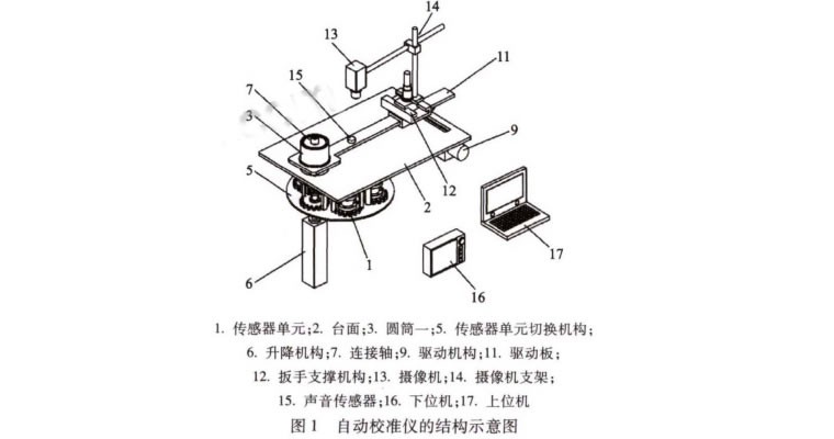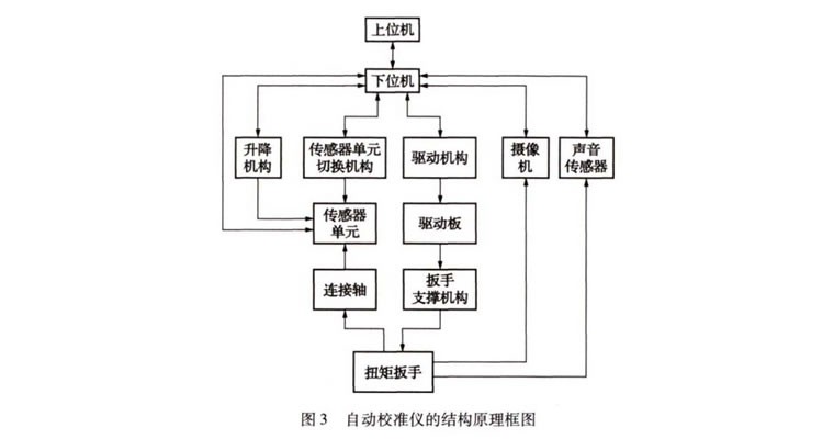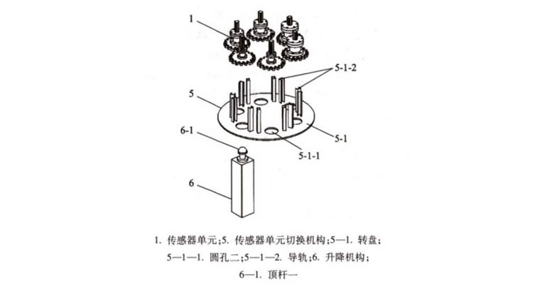 2、软件根据扭矩扳手的示值范围确定校准点后 ,通过下位机控制传感器单元切换机构选择相应量程的传感器单元,升降机构推动传感器单元上升并与连接轴连接;