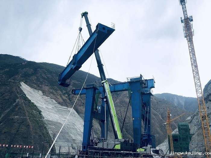 杨房沟水电站进水口门机主梁顺利吊装完成