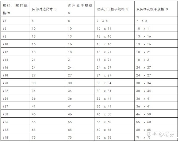 以下给出了少部分螺栓对应扳手的列表,敬请使用。